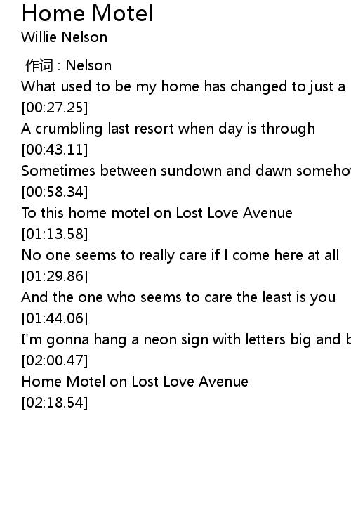 | [02:03.80] | Home Motel on Lost Love Avenue |