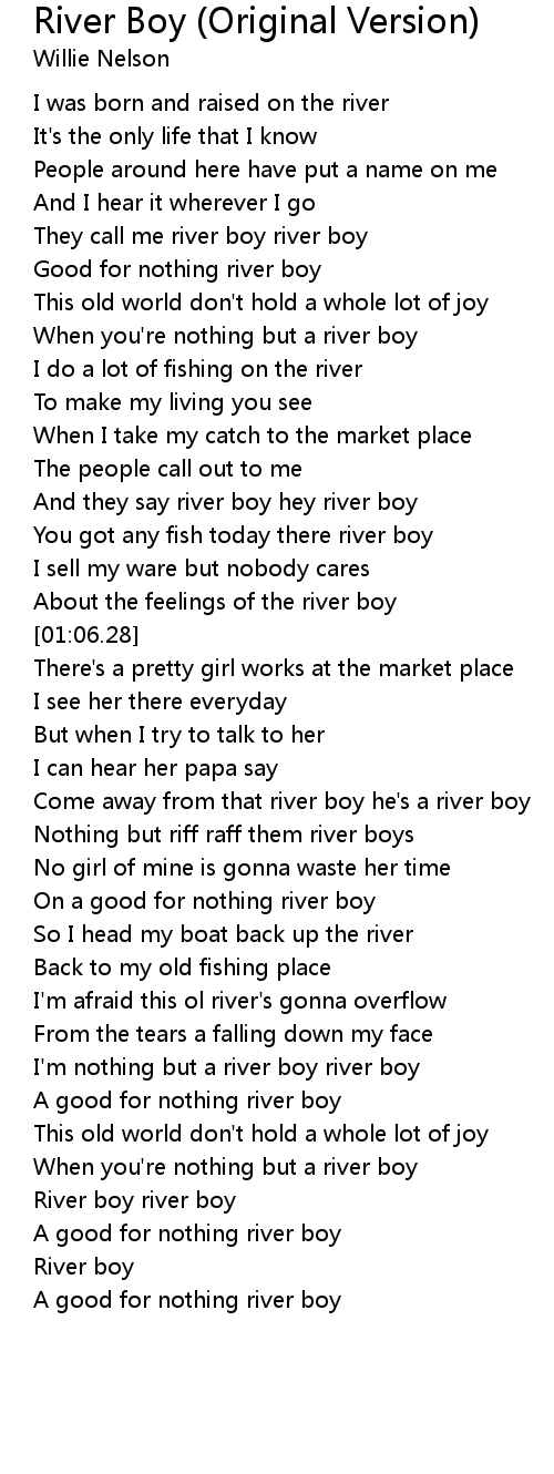 I'm nothing but a river boy river boy |