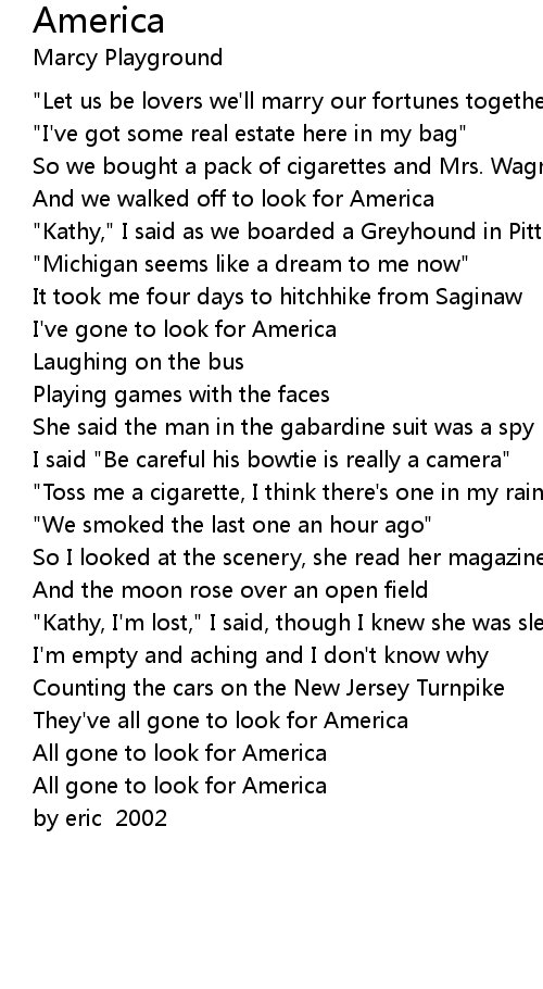 And we walked off to look for America |