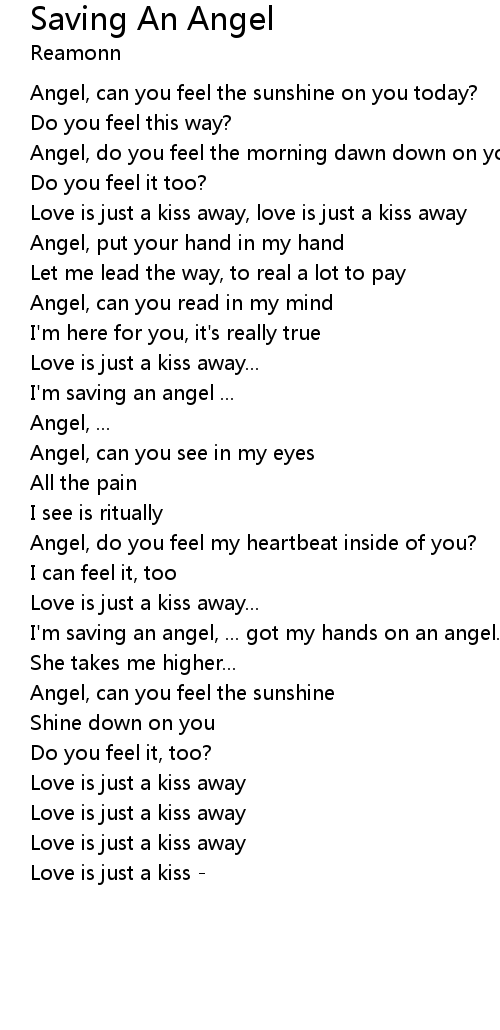 I'm saving an angel, ... got my hands on an angel... |