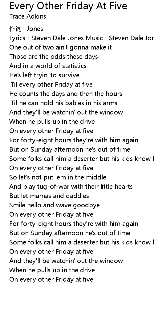 | ' Til every other Friday at five | |