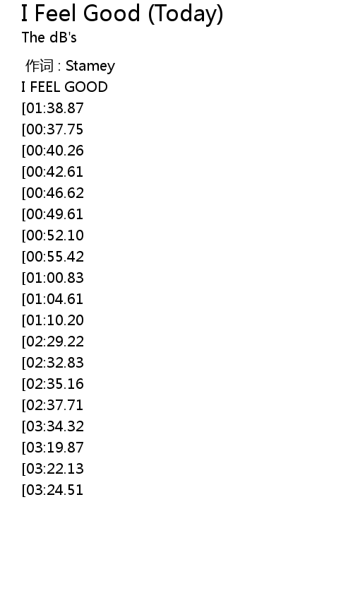 | [03:55.92][03:34.32][03:17.57][02:40.24][01:24.84] | I FEEL GOOD |