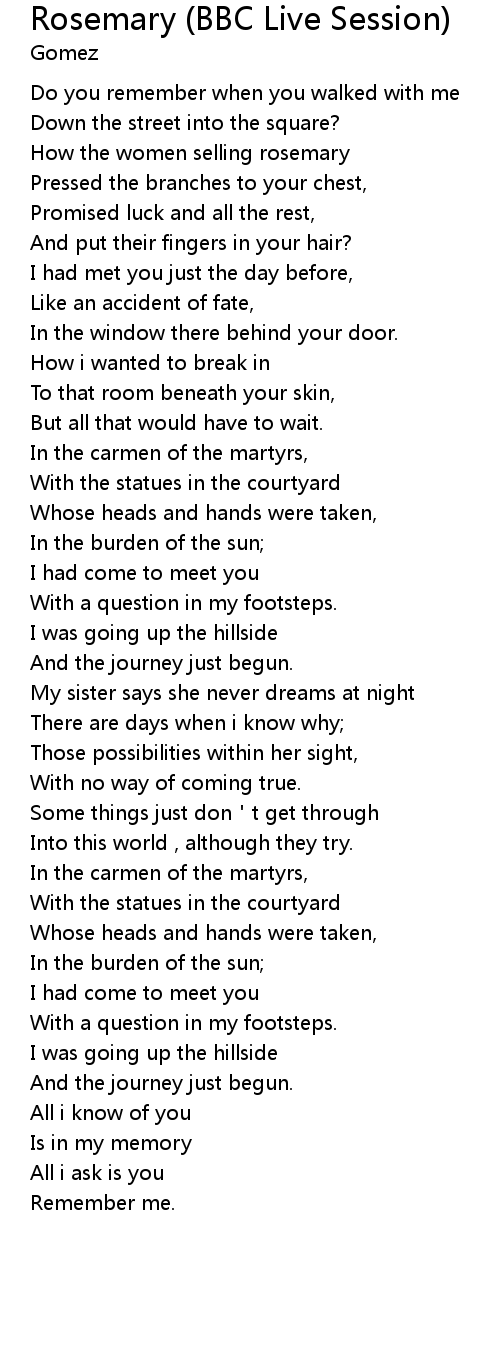 | Song | Rosemary (BBC Live Session) |