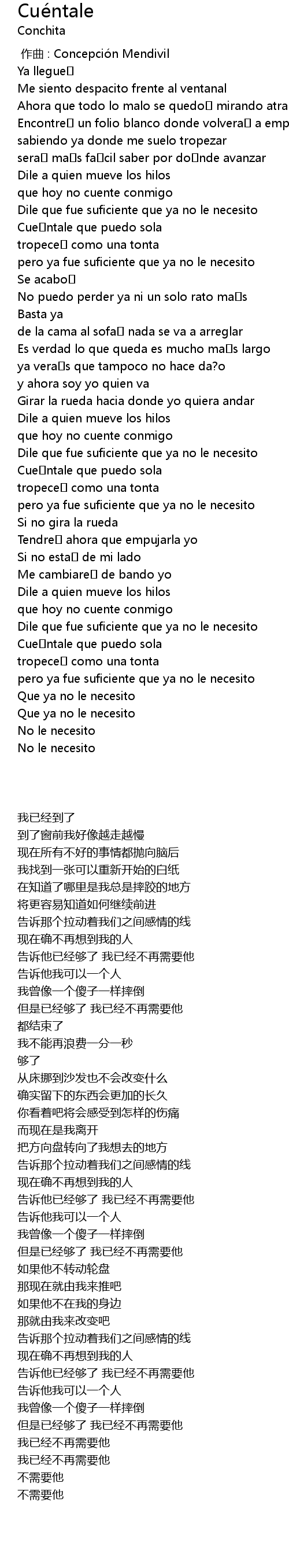 | [02:48.278] | Cue ntale que puedo sola |