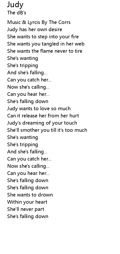 Judy's dreaming of your touch |