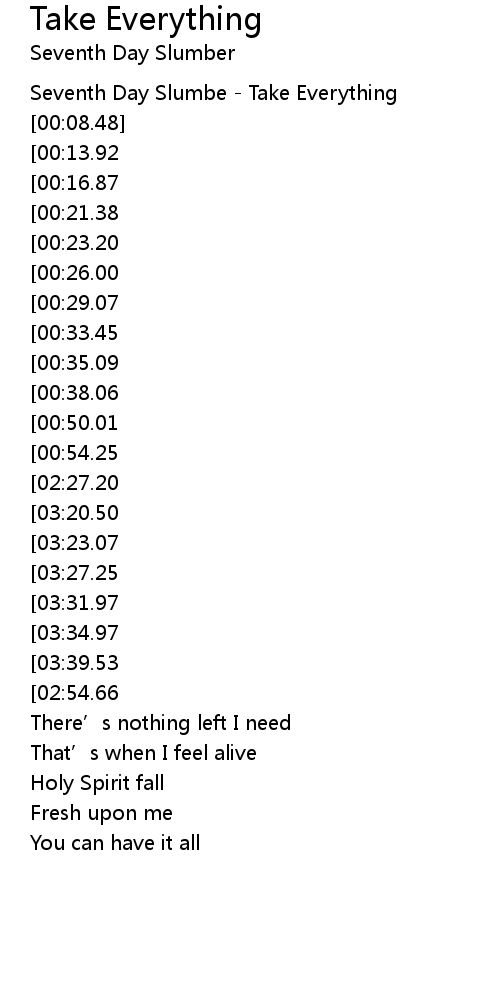 | [00:01.12] | Seventh Day Slumbe Take Everything |