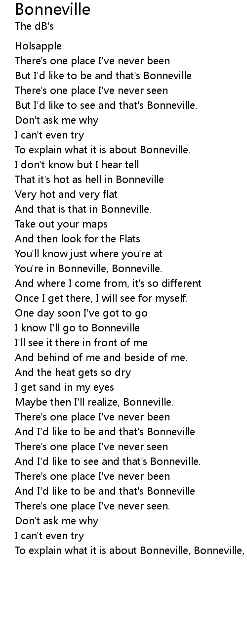 I know I'll go to Bonneville |