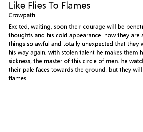| Song | Like Flies To Flames |