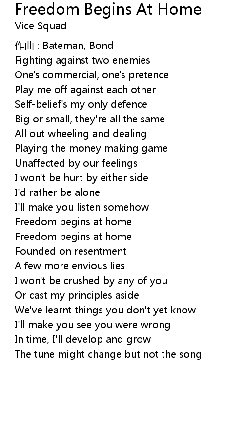 | Song | Freedom Begins At Home |