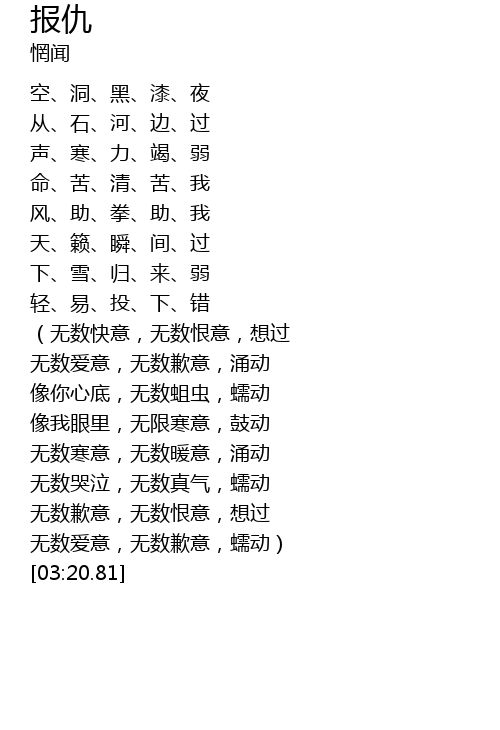 | [01:13.37] | 声、寒、力、竭、弱 |
