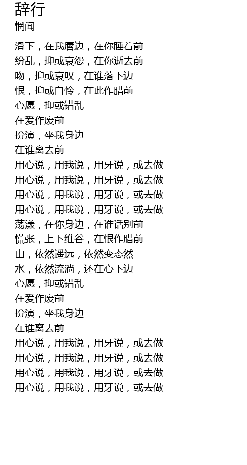 | [01:43.20] | yòng xīn shuō, yòng wǒ shuō, yòng yá shuō, huò qù zuò |