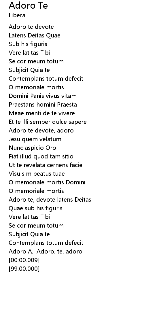| [03:20.09] | Adoro A.. Adoro. te, adoro |