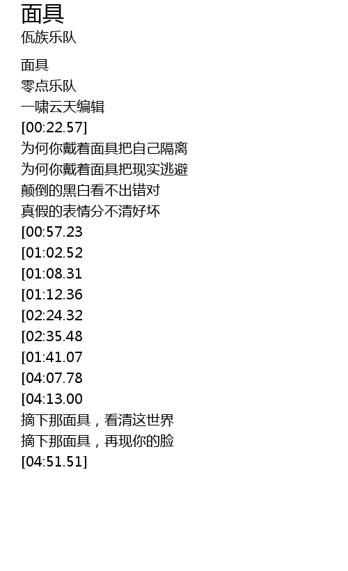 | [04:39.64] | 摘下那面具,再现你的脸 |