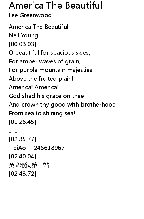 | [00:01.00] | America The Beautiful |