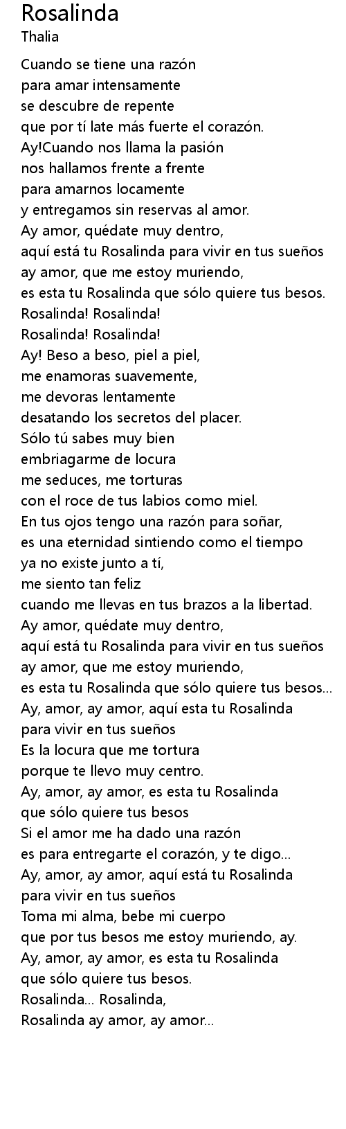 | es esta tu Rosalinda que sólo quiere tus besos. | |