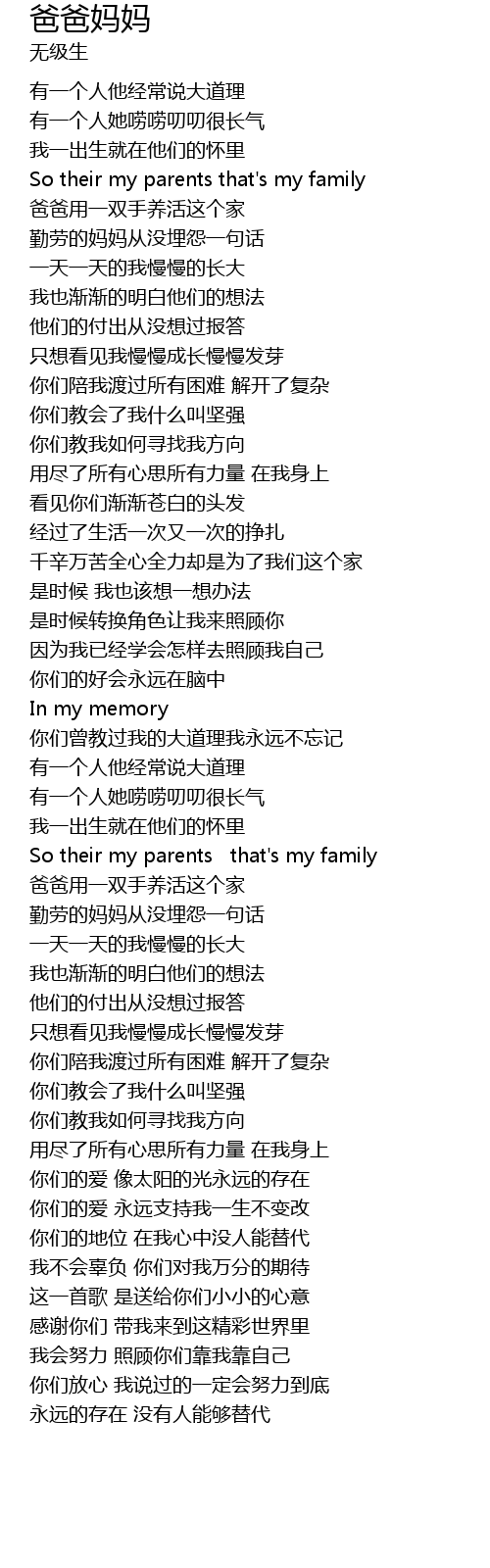 | [00:40.00] | So their my parents that' s my family |