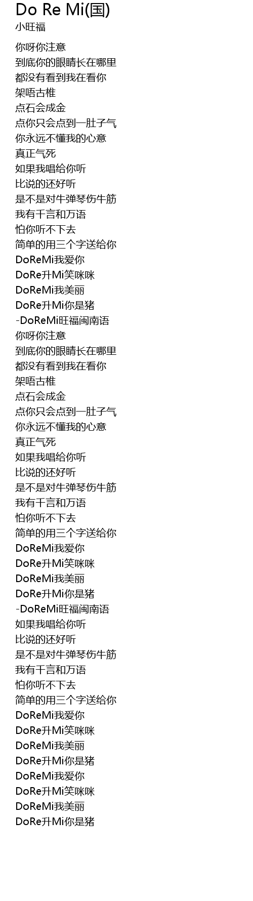 | [01:34.200] | DoReMi wàng fú mǐn nán yǔ |