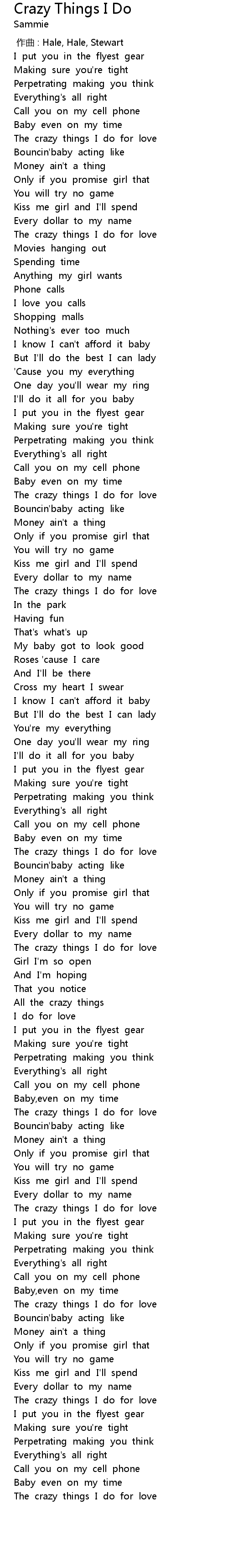 | [03:01.84] | The crazy things I do for love |