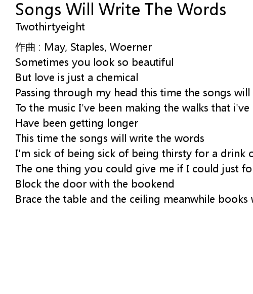 | Song | Songs Will Write The Words |