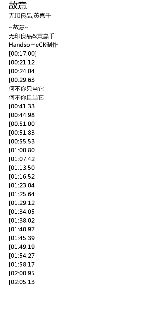 | [00:08.00] | 无印良品&黄嘉千 |