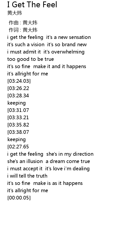 | [00:47.69] | i get the feeling it' s a new sensation |