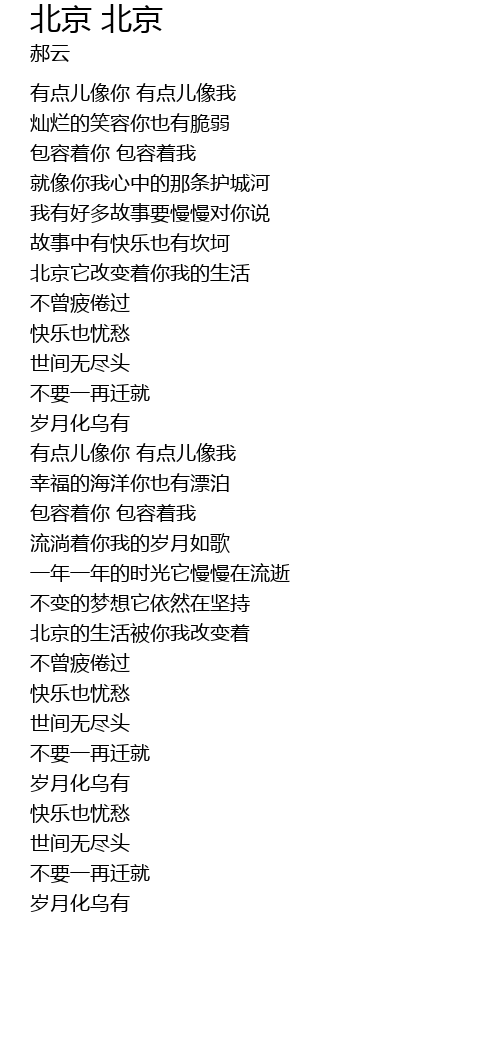 | [02:16.948] | běi jīng de shēng huó bèi nǐ wǒ gǎi biàn zhe |
