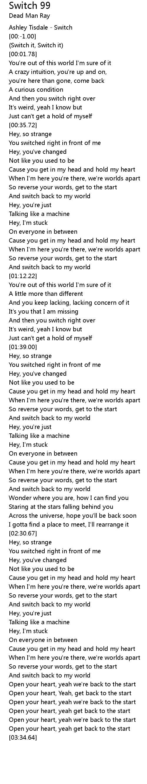 Switch 99 Lyrics