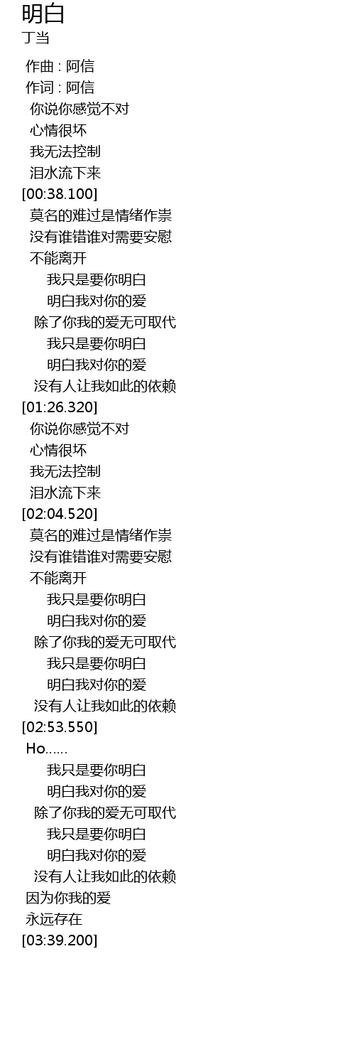 | [01:13.690] | wǒ zhǐ shì yào nǐ míng bái |