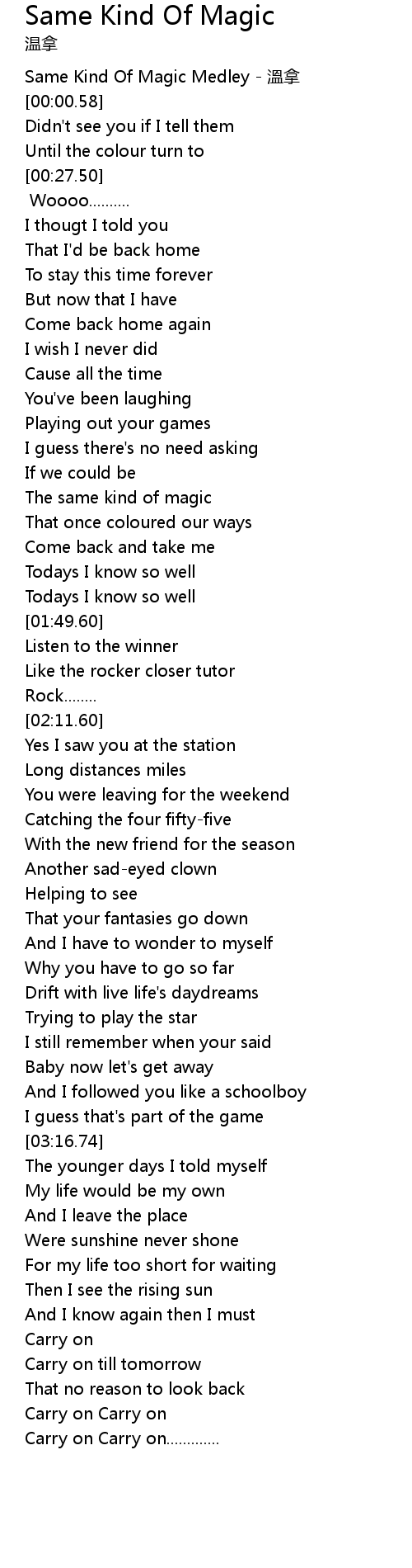 | [00:00.00] | Same Kind Of Magic Medley - 溫拿 |