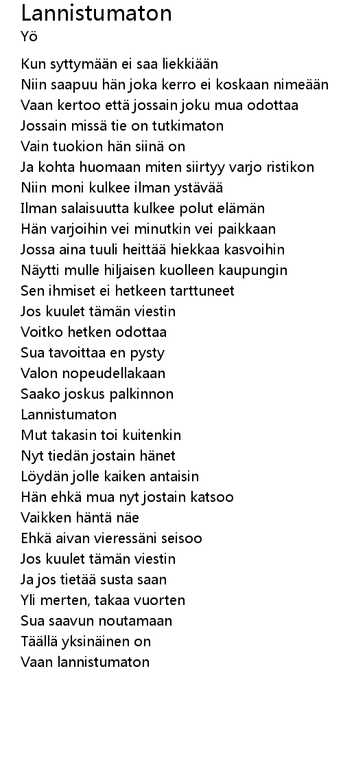 | Song | Lannistumaton |