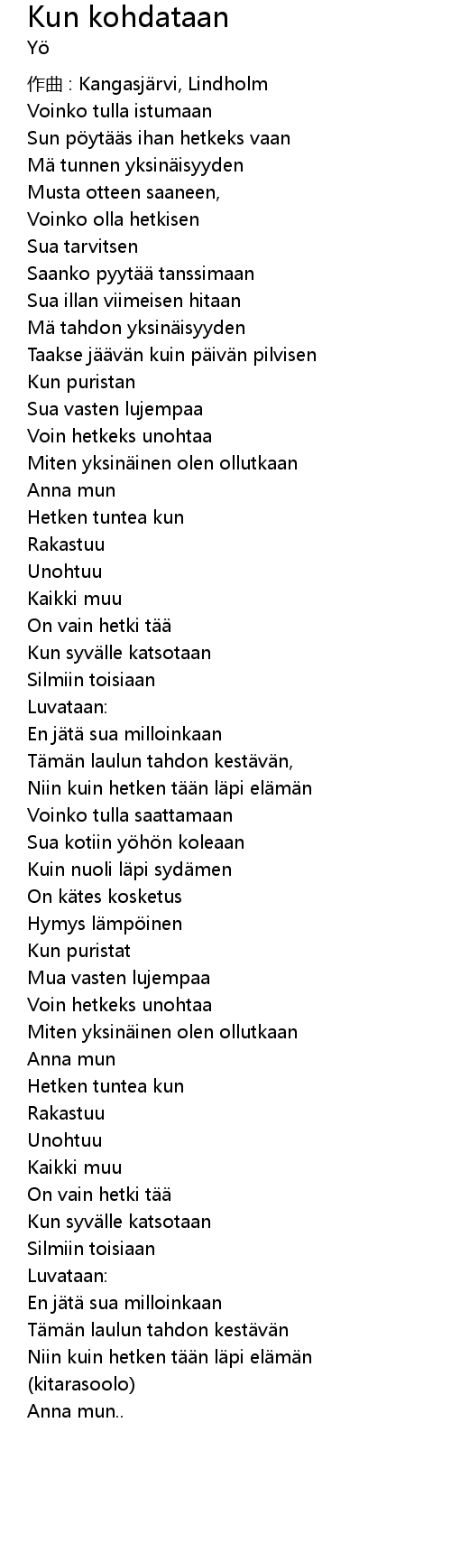 | Song | Kun kohdataan |