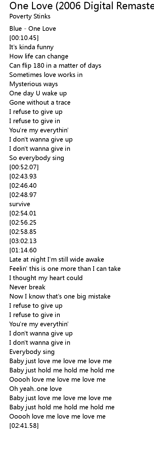 One love oh I do believe |