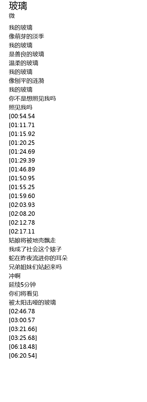 | [03:48.96][01:11.71] | 凶残坚硬的玻璃 |