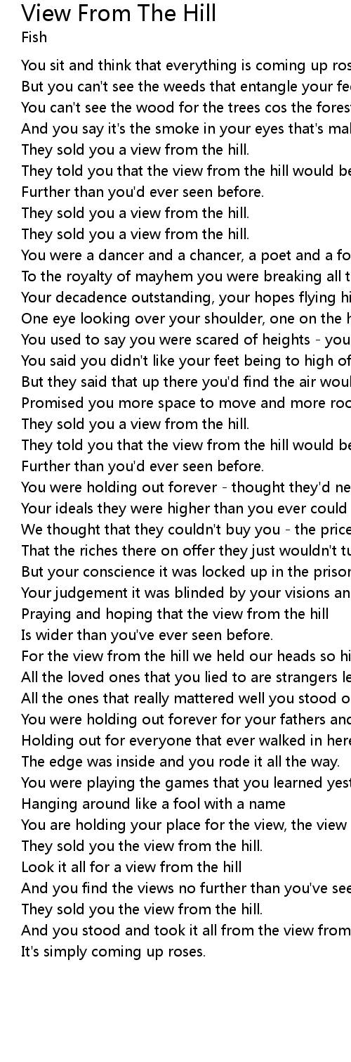 You are holding your place for the view, the view from the hill. |