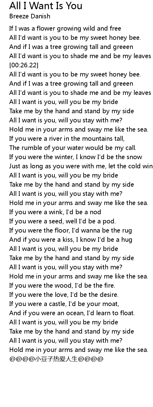 | [00:03.28] | All I' d want is you to be my sweet honey bee. |