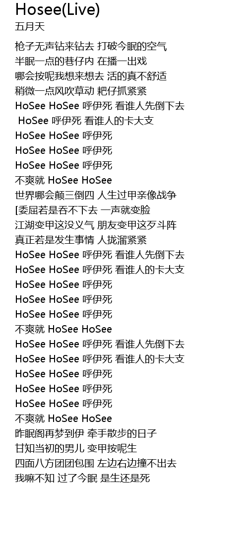 | [01:38.86] | HoSee HoSee 呼伊死 |