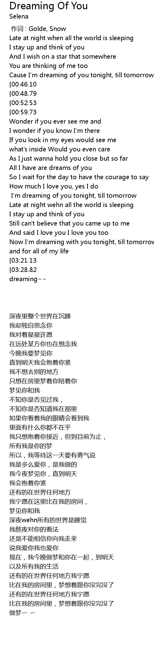 | [00:37.44] | Cause I'm dreaming of you tonight, till tomorrow |