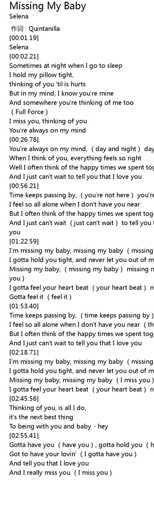 | [01:37.08] | Missing my baby, (missing my baby) missing my baby (I miss you) |