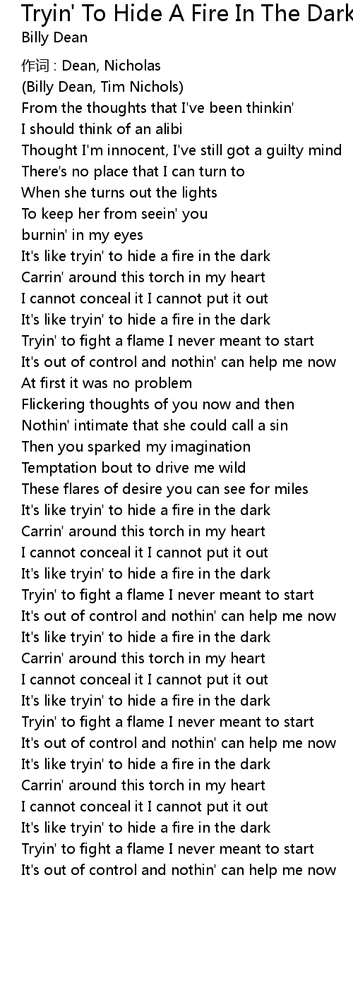 | Song | Tryin' To Hide A Fire In The Dark |