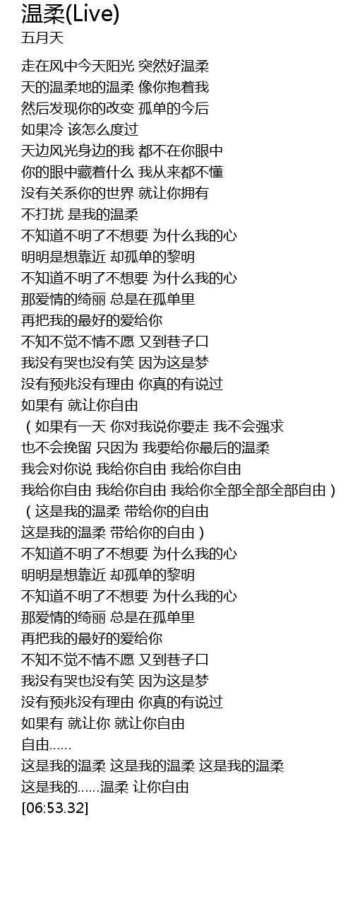 | [06:42.32] | 这是我的……温柔 让你自由 |