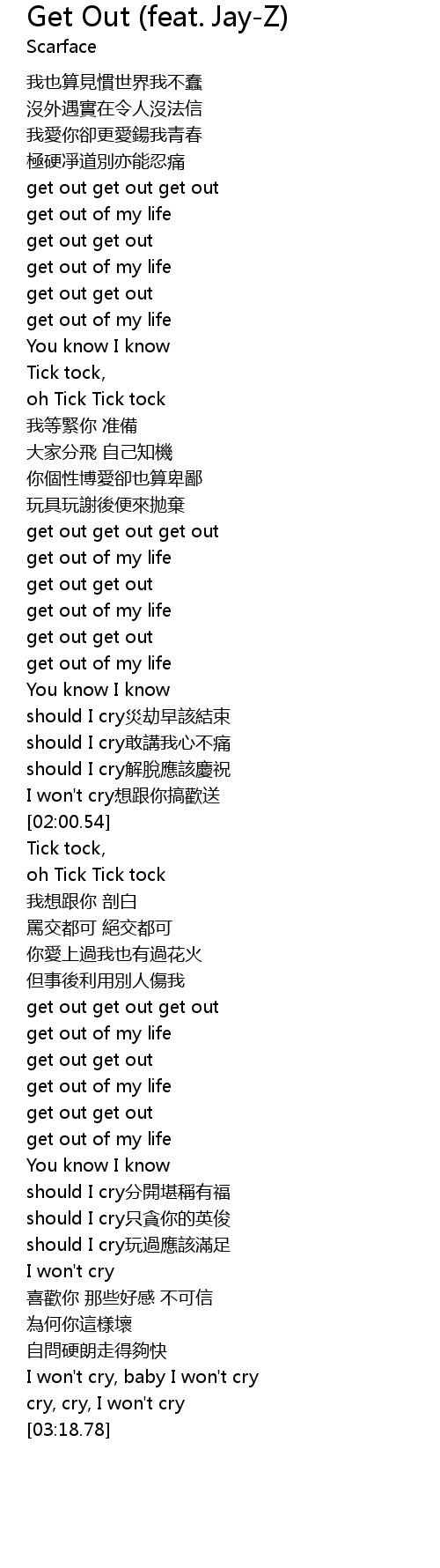 | [01:43.88] | should I cry zāi jié zǎo gāi jié shù |