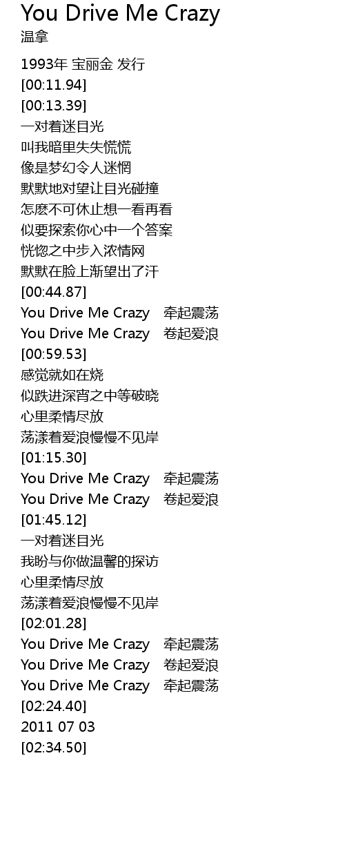 | [01:38.79] | You Drive Me Crazy juan qi ai lang |