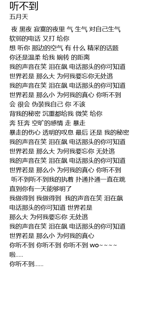 | [04:03.430] | 你听不到 你听不到 你听不到 wo~~~~ |