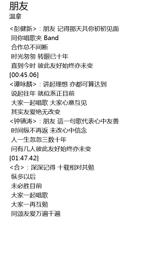 | [01:17.43] | <钟镇涛>:朋友 這一句歌代表心中友善 |