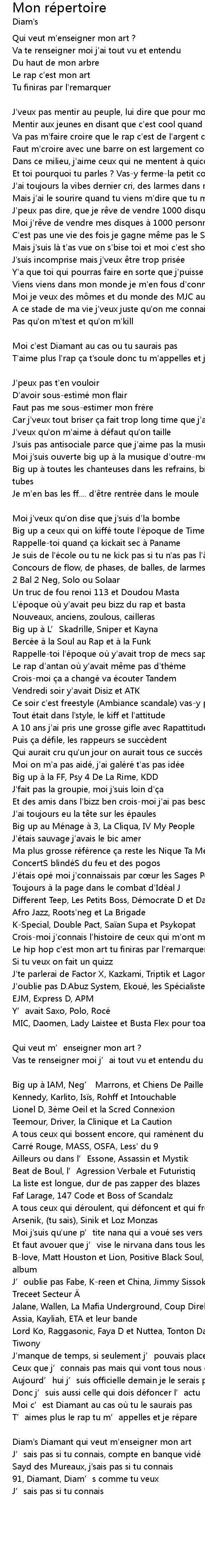 | Song | Mon répertoire |
