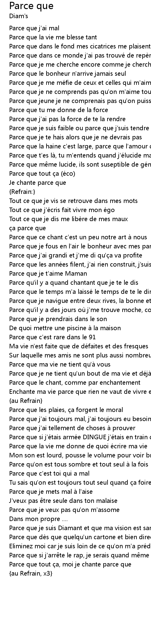 | Song | Parce que |