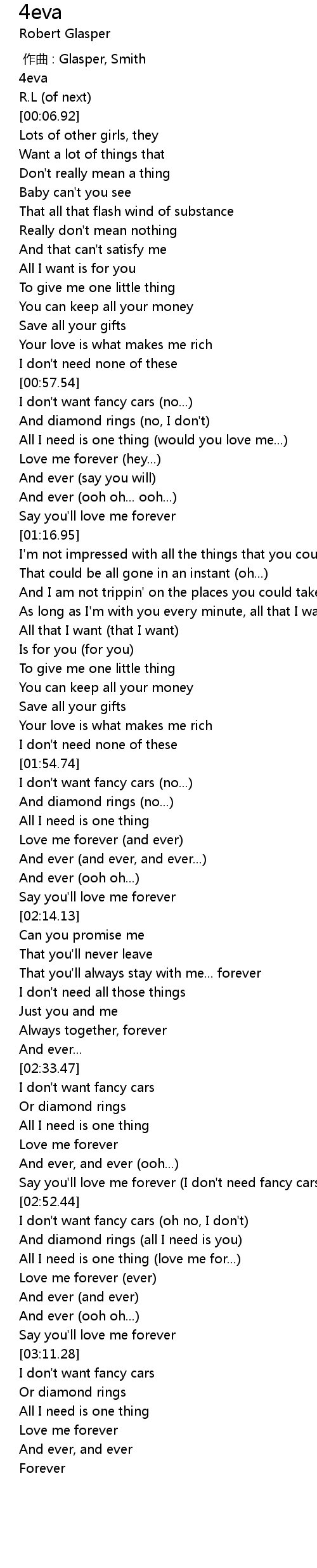 | [02:50.00] | Say you'll love me forever (I don't need fancy cars, no I don't) |