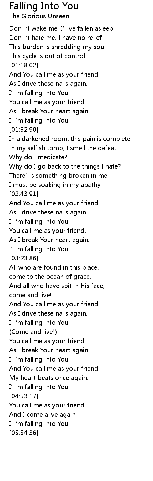 | [03:10.65] | I’m falling into You. |