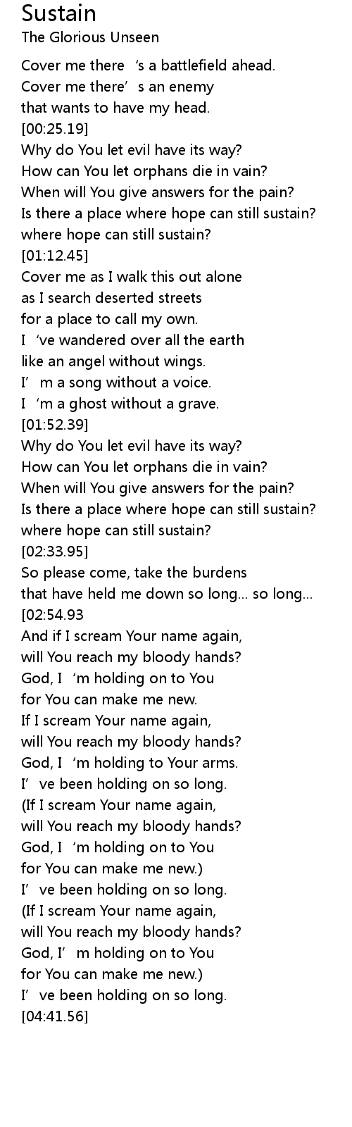 | [03:48.09] | God, I‘m holding to Your arms. |