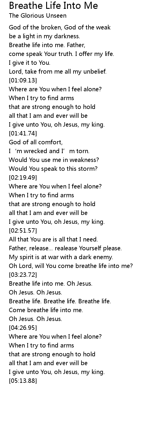 | [03:29.94] | Breathe life into me. Oh Jesus. |